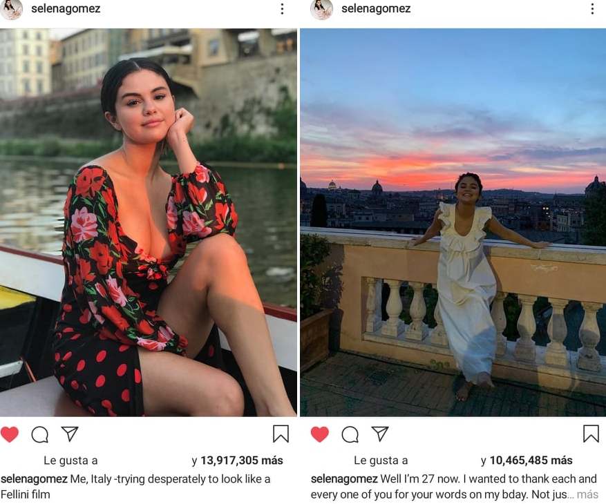 Estas 5 son unas de las más likeadas por sus seguidores de Instagram, lo cual hace a Selena una gran potencial para las empresas debido al enganche que genera con sus seguidores. Por cada post la cantante recibiría más de 800.000 dólares tengan o no interacción con el mismo.