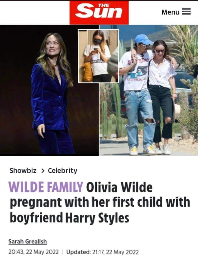 El medio The Sun ha publicado hace tan solo unos minutos un artículo en dónde revela a través de fotografías que Harry Styles y su novia, la actriz Olivia Wilde, están en la dulce espera de su primer bebé.