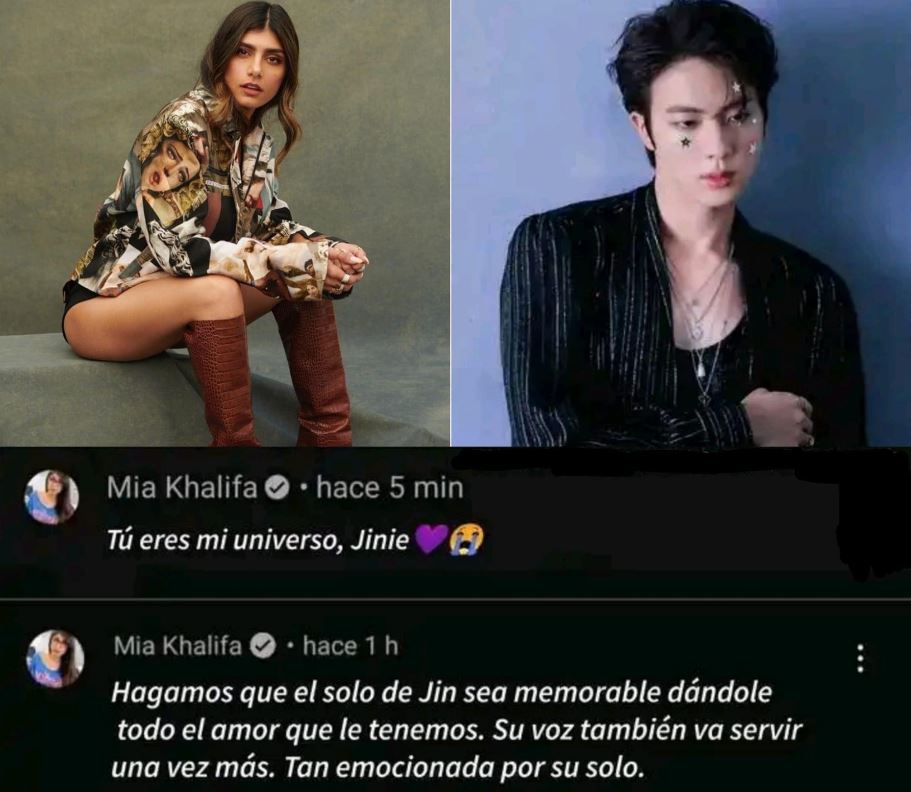 Pero esta vez fue la actriz de contenido para adultos Mia Khalifa la cuál tomó su cuenta personal de YouTube para confesar su amor por Jin y dejarle un encantador mensaje de apoyo que incluso conmovió al fandom ARMY. Sin lugar a dudas los chicos de BTS nunca dejan de sorprender con su talento.