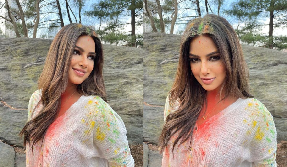 Harnaaz Sandhu ahora esta disfrutando de su país, y hace pocos días compartió una fotografía en las redes sociales, donde se le ve con una blusa color blanco, accesorios en dorado y varias manchas de colores en su cabello, ropa y piel.