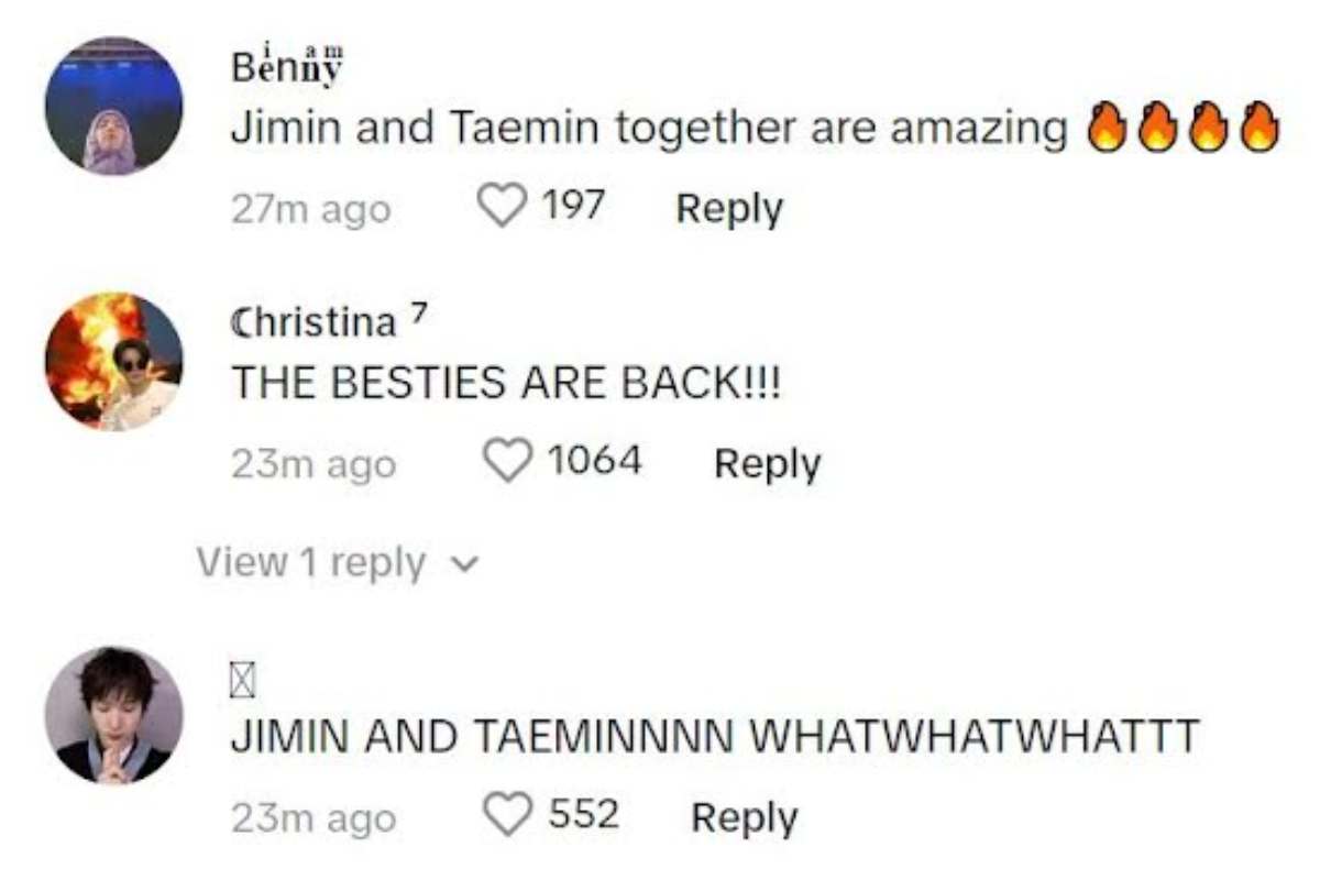 Ambos cantantes surcoreanos tuvieron una cercana interacción que dejo a más de uno de sus seguidores muy emocionado por lo ocurrido, pues ambos se reunieron nuevamente por medio de la plataforma TikTok demostrando sus pasos de baile, en la industria musical tanto Jimin como Taemin son reconocidos como dos de los mejores bailarines, los cuales nunca dejan de sorprender por sus pasos de baile y shows en los escenarios.