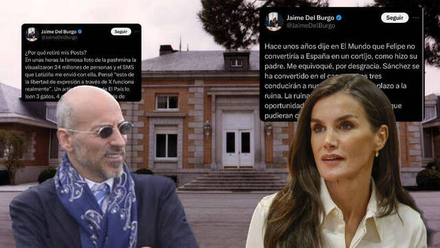«Renuncia de Letizia como princesa de Asturias, el divorcio de Felipe y el establecimiento como pareja en Nueva York, lo que habíamos planeado». Etiqueta Del Burgo a la Casa Real y a Pedro Sánchez en la plataforma de Twitter.