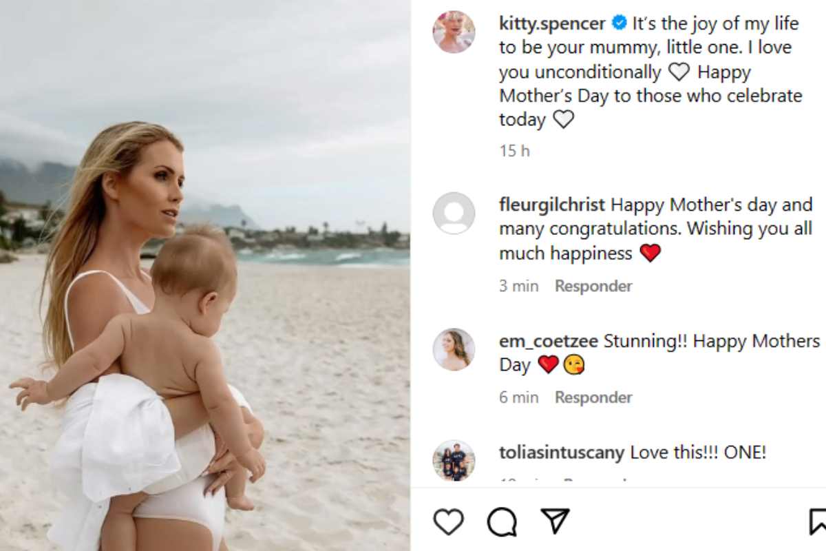 Kitty Spencer realizó eta publicación con el fin de celebrar el Día de la Madre en el Reino Unido, agregando junto a la foto una imagen que decía: «Es un orgullo y alegría para mí ser tu mamá«, «Te amo incondicionalmente. Feliz Día de la Madre a quienes están celebrándolo el día de hoy«.