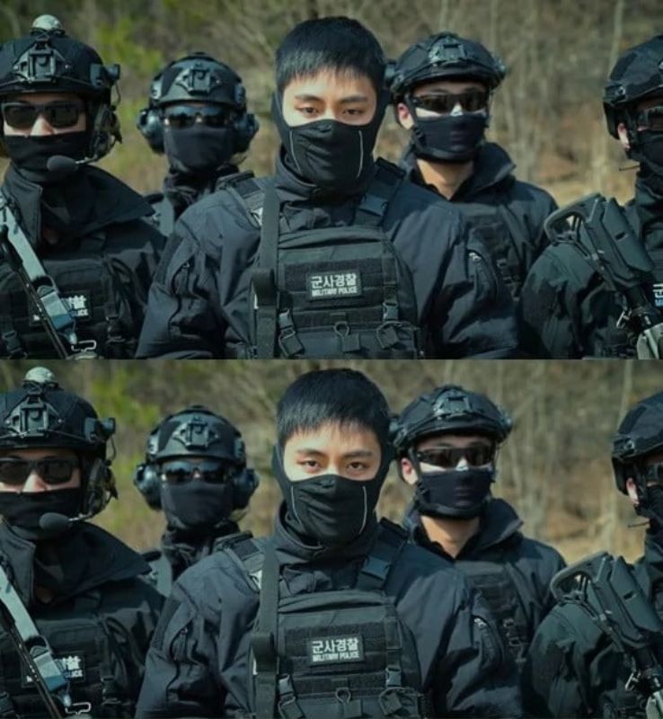 En este 17 de abril, se publicaron por redes sociales distintas imágenes de V de BTS para un video promocional del Segundo Cuerpo de Ejército en Chuncheon, usando su uniforme de combate y acompañado de un grupo que lo hace parecer otra persona, pues su fuerte e imponente mirada fue la que más llamó la atención.