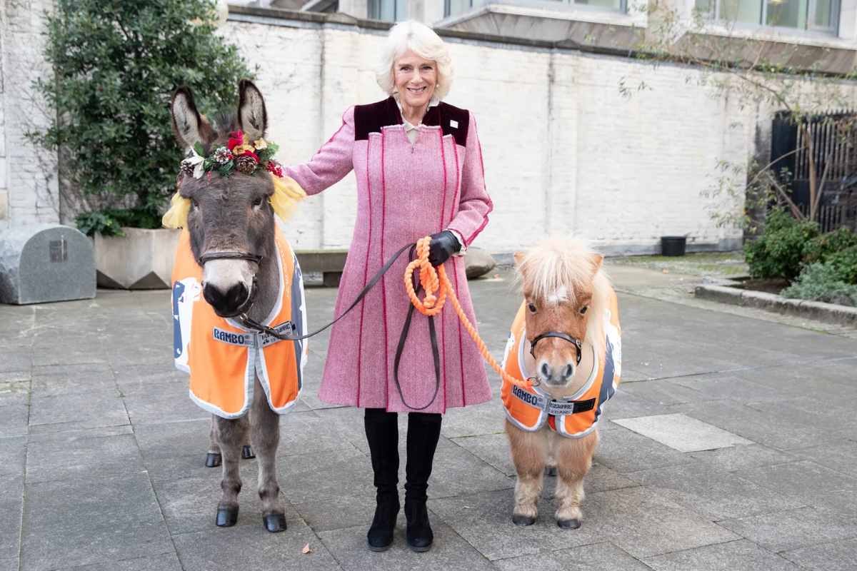 Los invitados especiales de la monarca fueron unas mini mascotas, específicamente un burro y un pony que se reunieron en el Palacio, conmemorando el aniversario número 90 de una organización benéfica para estas mascotas, caballos, burros y mulas que se empleaban para el trabajo desde 1934.
