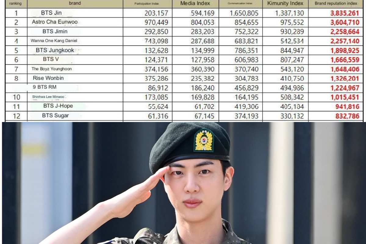 El Idol de BTS, Jin, recién dado de baja del ejército de Corea ha encabezado la lista de ser el Idol más popular de Corea en el mes de junio, según lo ha determinado el Instituto de Investigación de Reputación de Marca del país, el cual analizó de manera meticulosa los datos de más de 700 Idols, que incluyen la actividad que han tenido con los medios, la actividad de sus fanáticos y además la participación del consumidor.