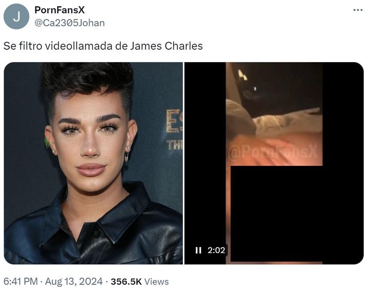 El 11 de agosto de 2024, el canal de Telegram [1] PornFansX publicó un video de cinco minutos de duración de un hombre parecido al influencer James Charles teniendo sexo por video con otro hombre, titulado «JAMES CHARLES: se filtró una videollamada a este famoso influencer» (captura de pantalla censurada que se muestra a continuación).