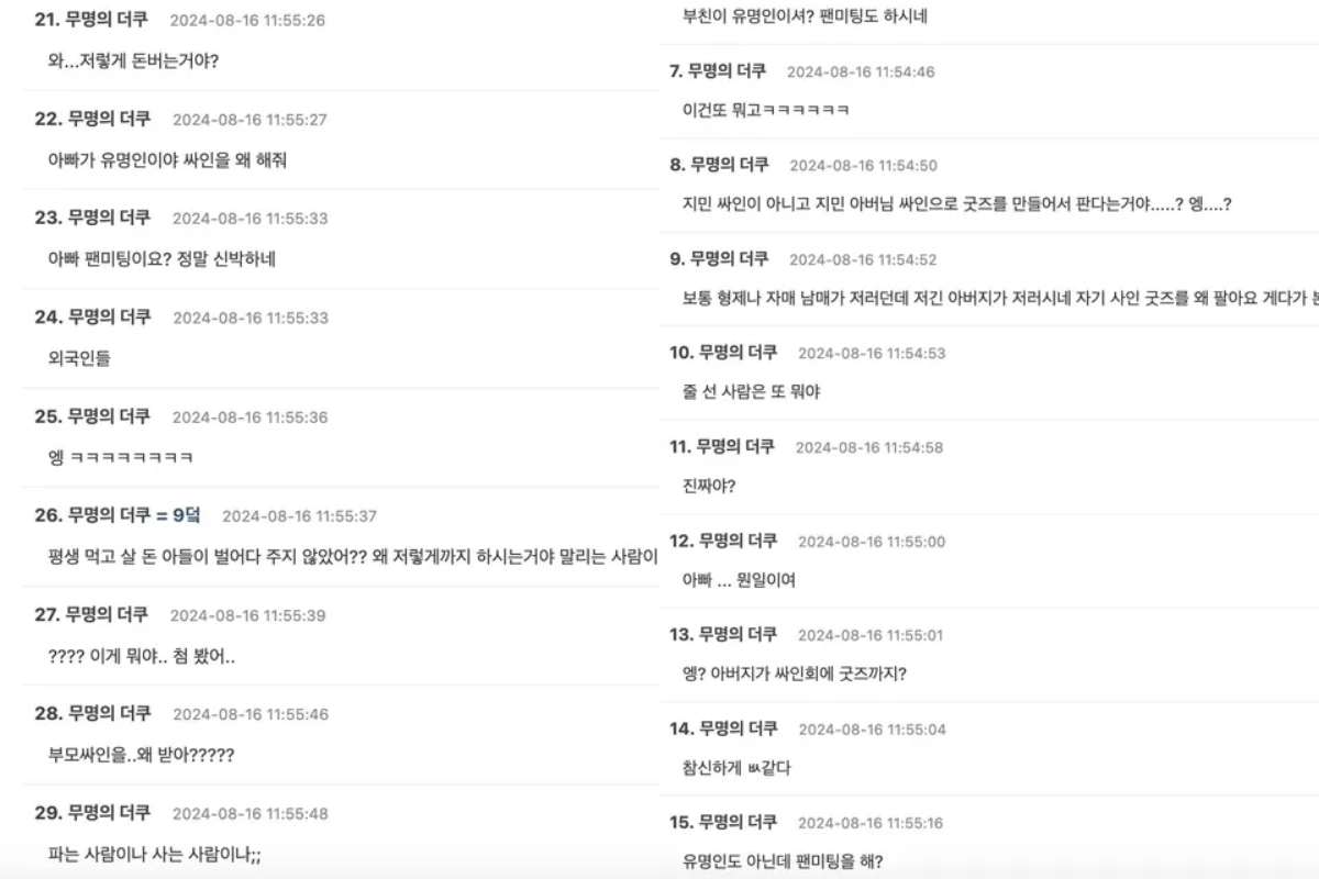 Por supuesto, los internautas coreanos se sorprendieron que el padre del artista organizara un evento de firma de autógrafos, haciendo comentarios como: