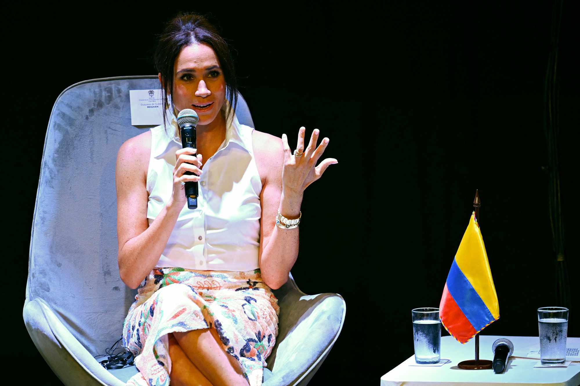 Todo ocurrió durante un encuentro en el Teatro Municipal Enrique Buenaventura de la ciudad de Cali, en donde se estuvo hablando sobre el empoderamiento de las mujeres afrocolombianas en el que también participaban el duque de Sussex y la vicepresidenta de Colombia.