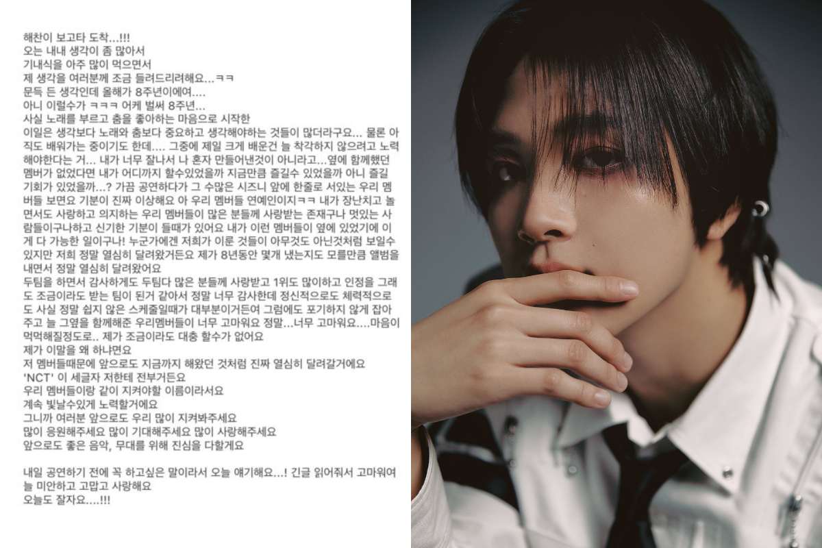 Hace un par de horas, el reconocido Idol de NCT, Haechan, compartió un mensaje por redes sociales para todos sus fans en este 31 de agosto del 2024. El artista, que normalmente no está acostumbrado a tener este tipo de acciones, envió un extenso y emotivo mensaje, siendo este la primera vez que se dirige a sus seguidores luego del escándalo de delitos sexuales del ahora exmiembro de su grupo, Taeil.