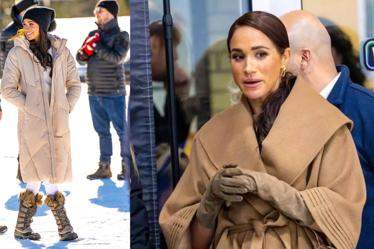 Elegancia a pesar del clima: Un momento en el que parecía que el clima sería impedimento para eventos, Meghan optó por las prendas más sofisticadas de su armario. Usó un blazer abrigado con detalles elegantes, y que tenía un cinturón, junto a unos guantes en tono camel, un peinado recogido, maquillaje natural y accesorios en tono dorado para complementar su look perfecto.