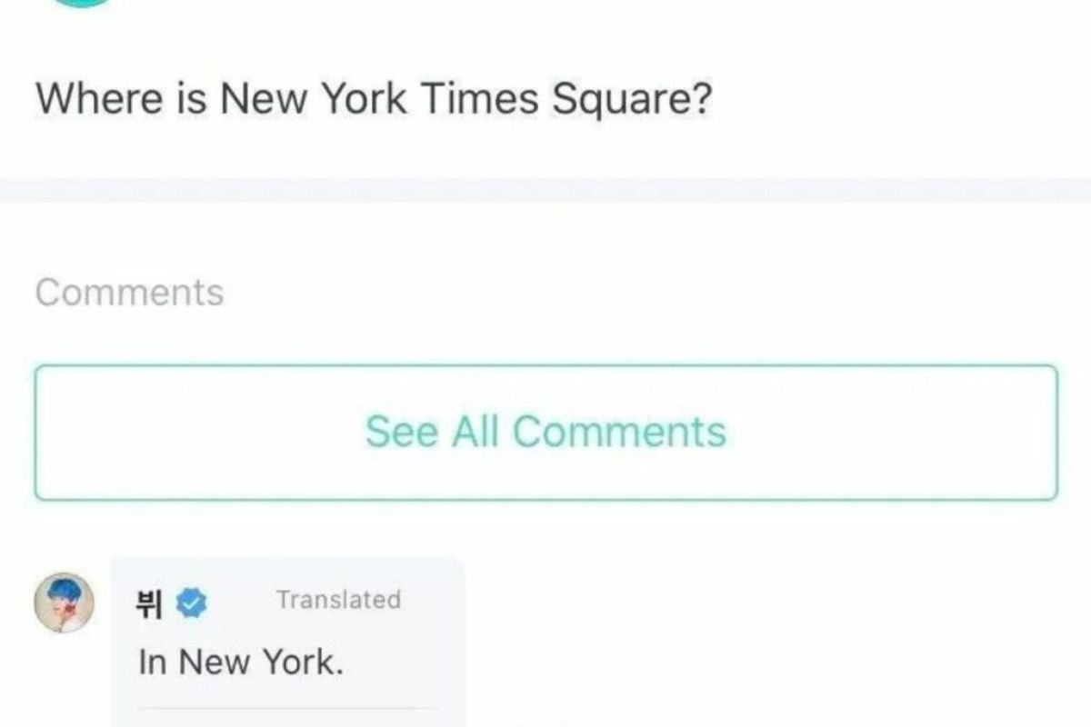 1. Cuando una fanática le comentó que donde se encontraba el Times Square de Nueva York, V con la intención de responder conciso y sincero, le dijo: «en Nueva York».