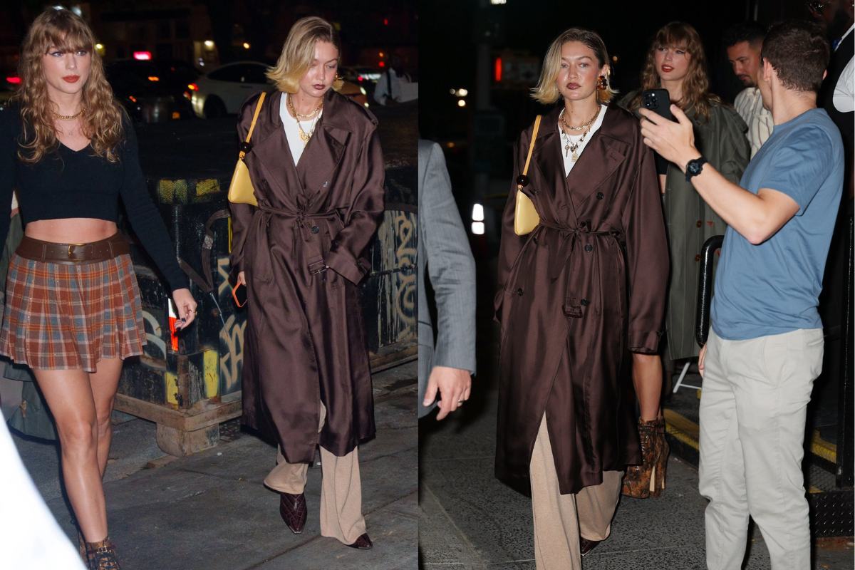 Para la salida nocturna de las chicas, Taylor Swift usó un top negro corto de mangas largas y una minifalda a cuadros en tonos color marrón, verde y naranja. Por su parte, Hadid también lució un look inspirado en el otoño, con una camiseta blanca, pantalones holgados y unas botas marrones que la hacían lucir única.