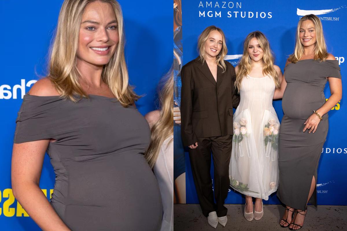 Para esta ocasión, la superestrella australiana del cine apareció dando un paseo en público, con un largo vestido en color gris y un chaleco negro, completando su look con un bolso y unas gafas de sol, tal vez para no ser reconocida, pero sus fans la captaron al momento de ser vista. Lo más destacable de la aparición de Margot Robbie fue su gran barriga, donde tiene a su primogénito.