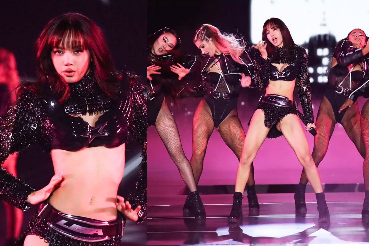 Durante toda la actuación, Lisa lució un conjunto rockero elegante. Lucía un top corto de cuero negro con hombros deslumbrantes que mostraba su sujetador de cuero. Su look de actuación se completó con una elaborada braguita de bikini con cadenas, inclinándose hacia la estética de lencería del espectáculo.
