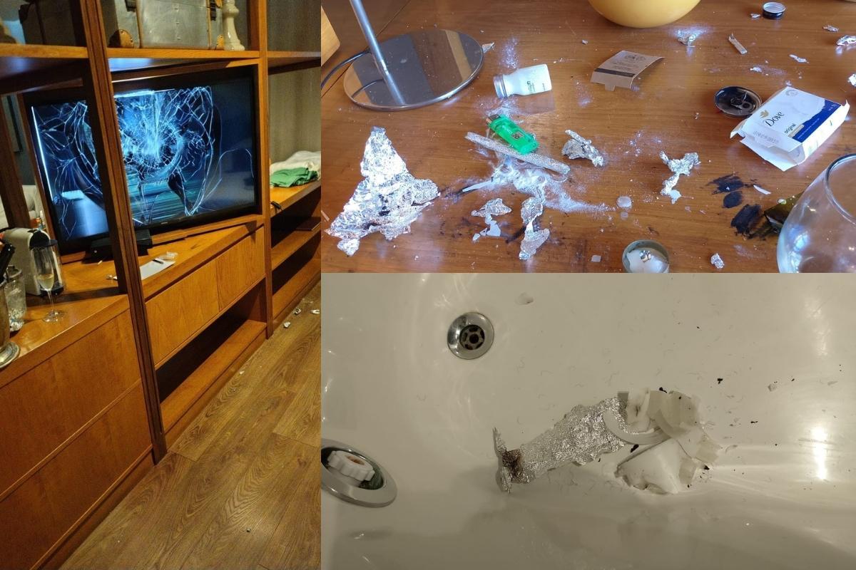 Por su parte, lo que sí se ha confirmado a través de múltiples reportes de empleados del hotel, fue su comportamiento agresivo en sus últimas horas con vida, por lo que también vemos un televisor roto entre las fotos.