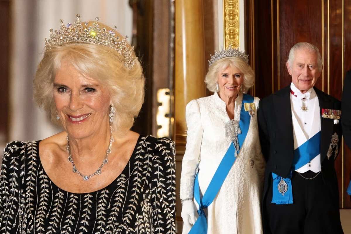 Para la recepción en honor del Cuerpo Diplomático en el mes de diciembre del año pasado 2023, Camilla lució una vez más la tiara de las Niñas de Gran Bretaña e Irlanda, una de las favoritas de la difunta reina Isabel.