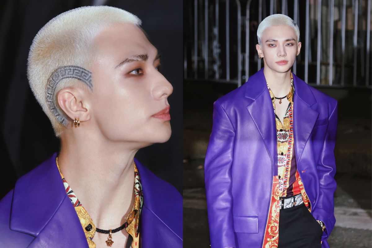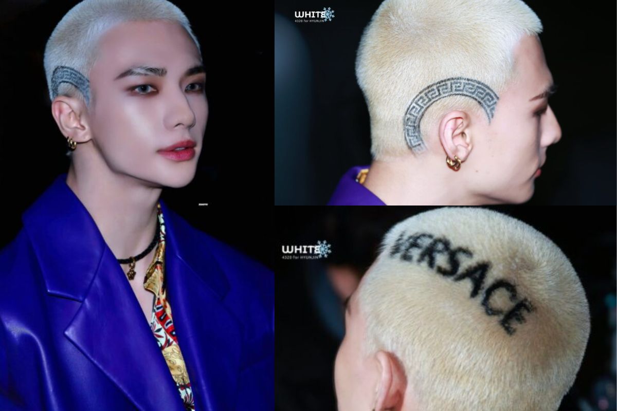 Sin embargo, en su más reciente aparición en el desfile FW25 de Versace en la Semana de la Moda de Milán, el Idol ha llamado fuertemente la atención de los fanáticos por el nuevo y «bizarro» look que lució, Hyunjin llevaba su característico cabello corto, pero tintado de rubio y con el estampado de la marca ‘Versace’.