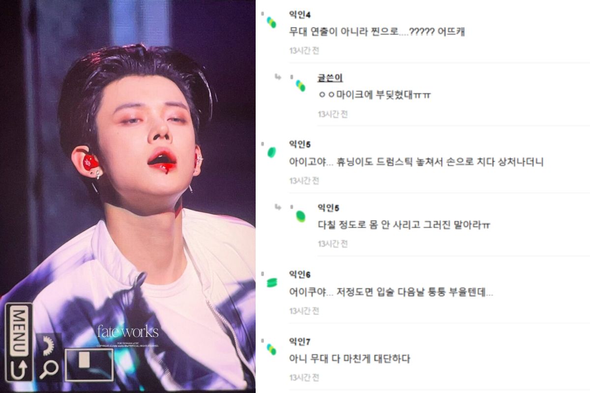 En un reciente concierto del grupo de chicos, el idol se encontraba realizando con entusiasmo su show cuando accidentalmente golpeó su labio inferior con su micrófono, pero lo más sorprendente fue que poco después se vio como sangraba mientras continuaba su actuación.