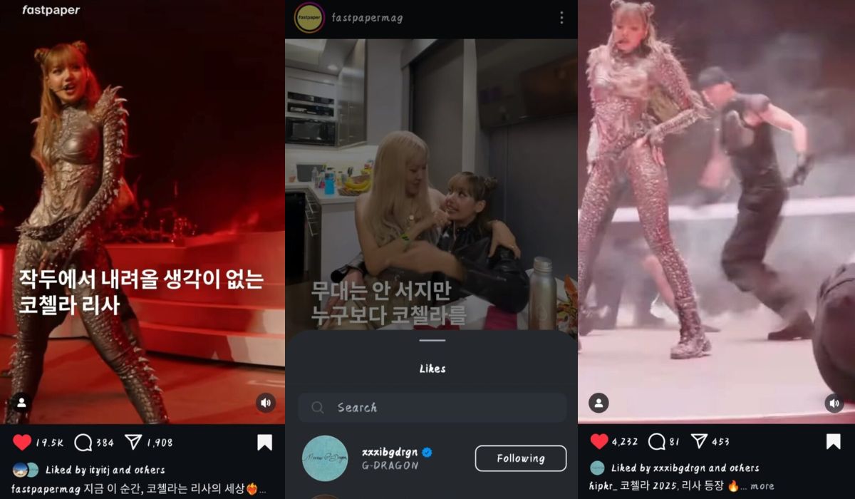 Poco después, G-Dragon mostró su apoyo dejando likes a varias publicaciones en Instagram relacionadas con la actuación de Lisa, lo que ha emocionado a todos los fans del K-Pop por este apoyo discreto pero sincero a la rapera.