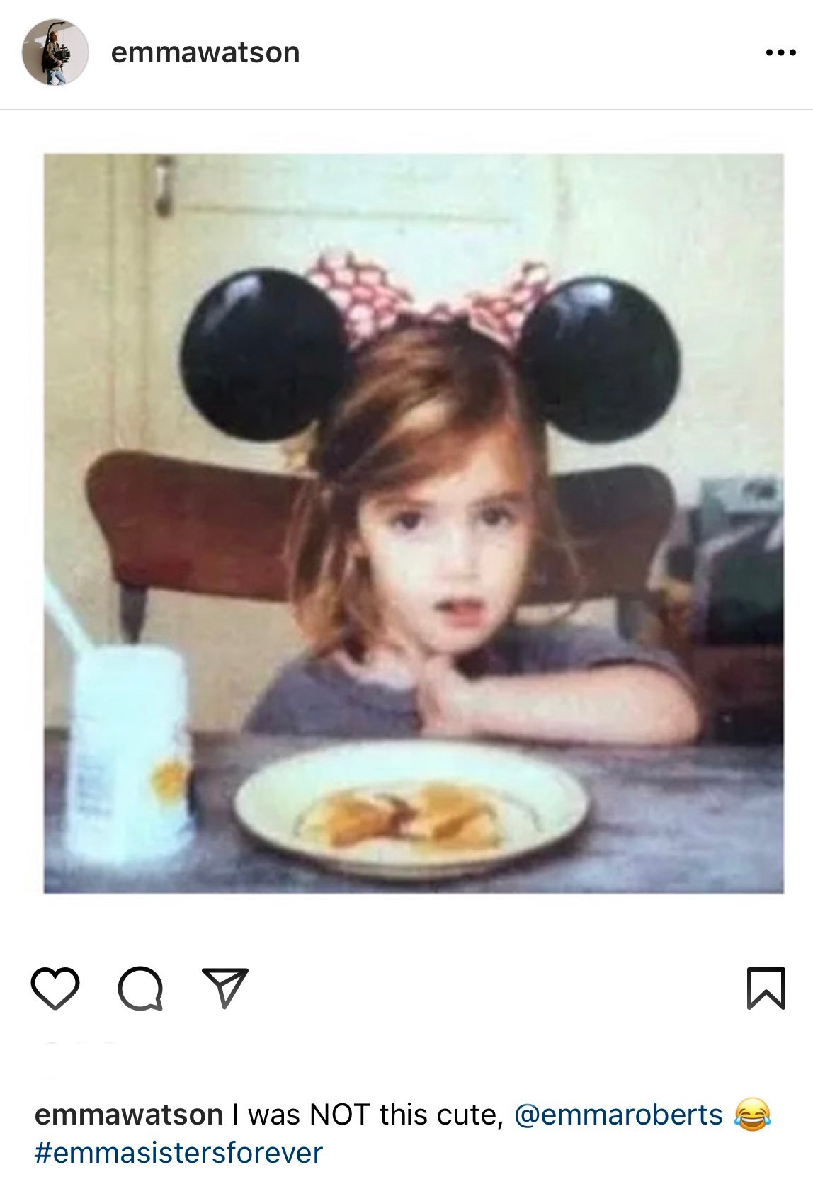 I was NOT this cute, @emmaroberts“. She added a hashtag “#emmasistersforever” to her post.