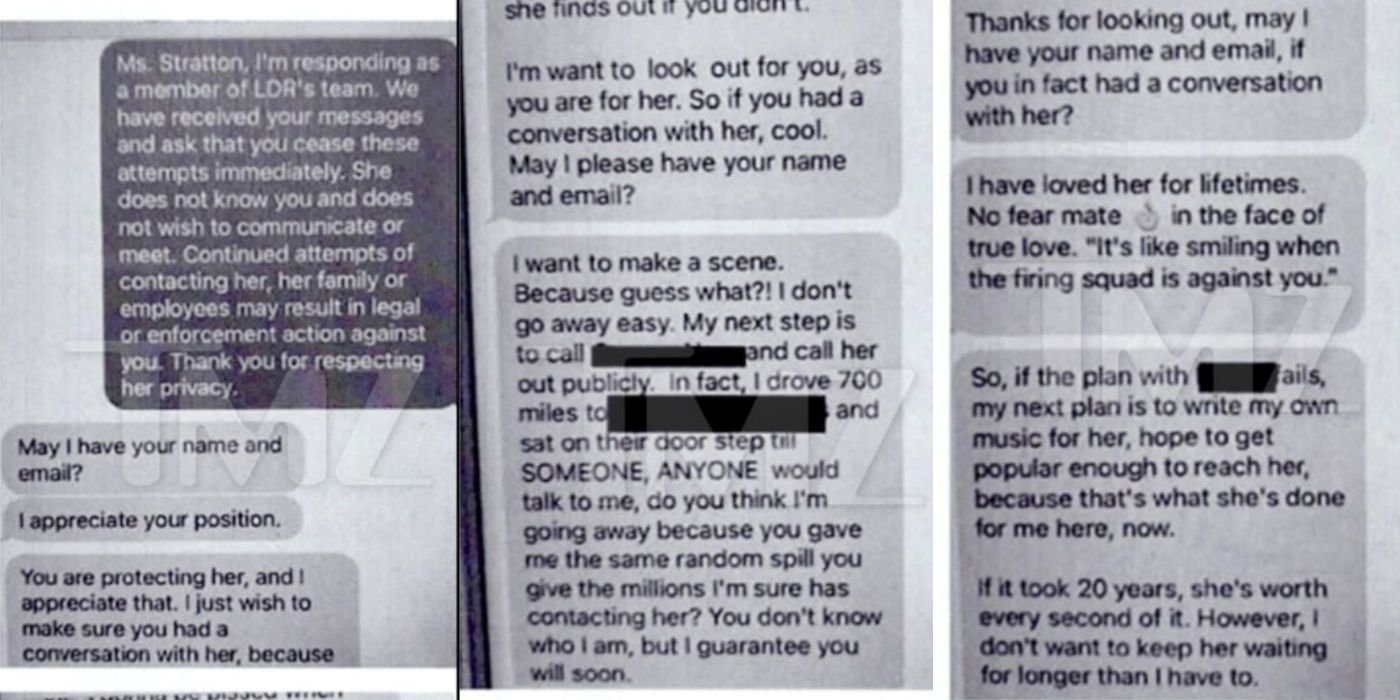 Thus, the stalker is repeatedly harassing members of Lana’s team to demand a date. Some screenshots of the messages were obtained, including a very emphatic response from a representative.