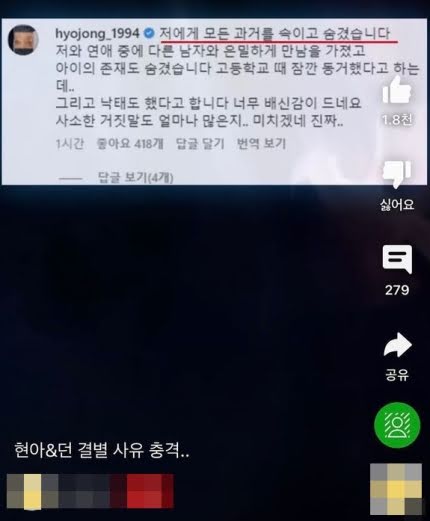 In the post, the idol responded to an edited image that came to light after the announcement of their breakup in which it seemed that DAWN claimed that the reasons for their split were because HyunA lied to him and hid details from the past.