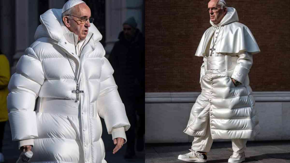 The Pope of the Catholic Church is depicted in images as wearing all-white clothing that perfectly matches the episcopal skullcap worn by priests and respects the cross that is always hung around his neck. In another image, he is seen sporting a puffer jacket.