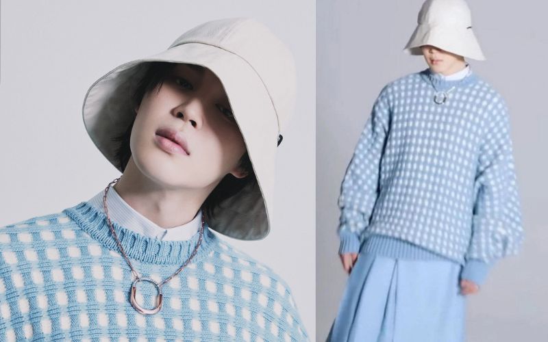 Throughout the pictures, ARMY was more than amused because of his looks, but when they saw the penultimate fit, they almost fainted. Jimin wore a blue sweater, a white hat, a pleated blue skirt, and chunky black boots. The complete outfit leaves Jimin shining brighter than ever, and this is living proof he can transform the fashion scene.