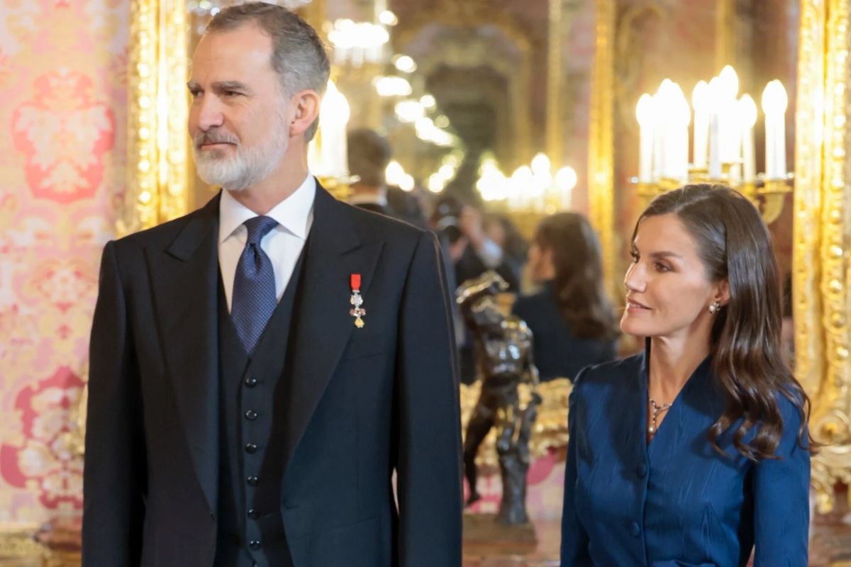 Recently, the reception for the Diplomatic Corps accredited in Spain was held, where Queen Letizia and King Felipe attended. In the hall, the monarch appeared wearing an elegant tuxedo with gray striped pants, while the queen wore a navy blue shirtdress with a V-neckline and a bow tie at the waist, showing the great presence that both have anywhere.