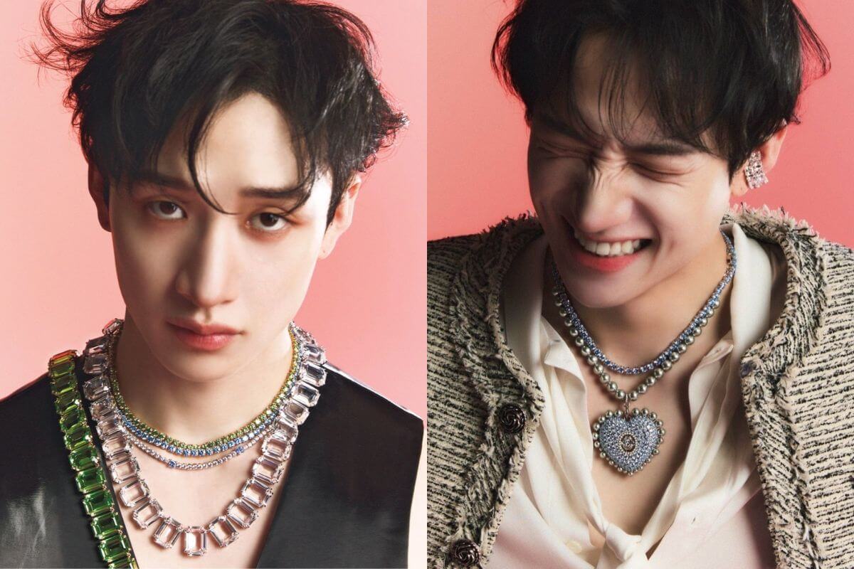 Since the announcement of his collaboration with the magazine for the cover of the upcoming April issue of NYLON Japan, fans have been excited, but when the luxury brand Swarovski shared the new images of Stray Kids’ leader on its official website, they were shocked.