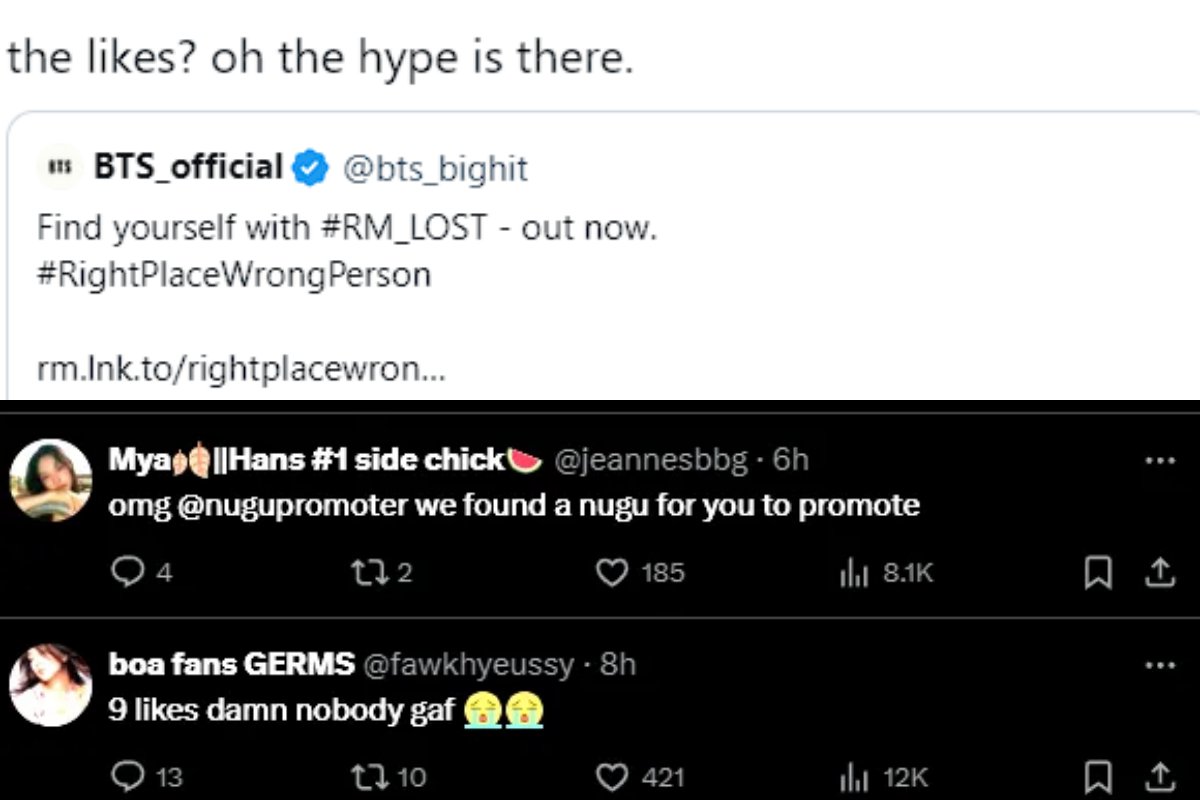 After seeing that like drought, some K-Pop fans started serving tea with jokes in the comments and replies, with some of them wondering if BTS and RM were losing their star power. But hold up—let’s not jump to conclusions! This low-like number was just an ad mishap. Unlike the regular posts from BTS, this ad was just popping up randomly, which explains why it wasn’t getting the usual love. Ads don’t usually get the attention that BTS’ actual account or promo tweets do get.
