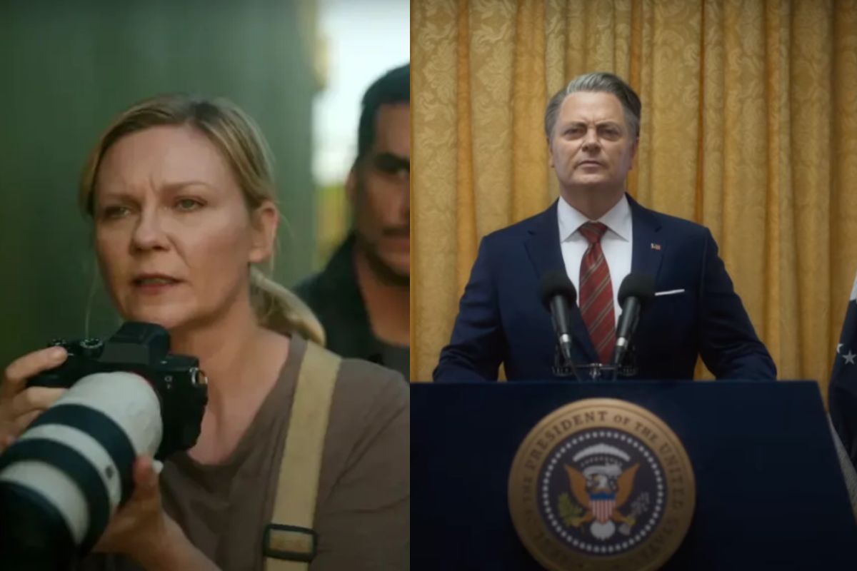The film, which will be released in theaters April 26 in the U.S., shows forces from Texas and California advancing toward the White House in a dystopian country. And as the brief synopsis indicates: