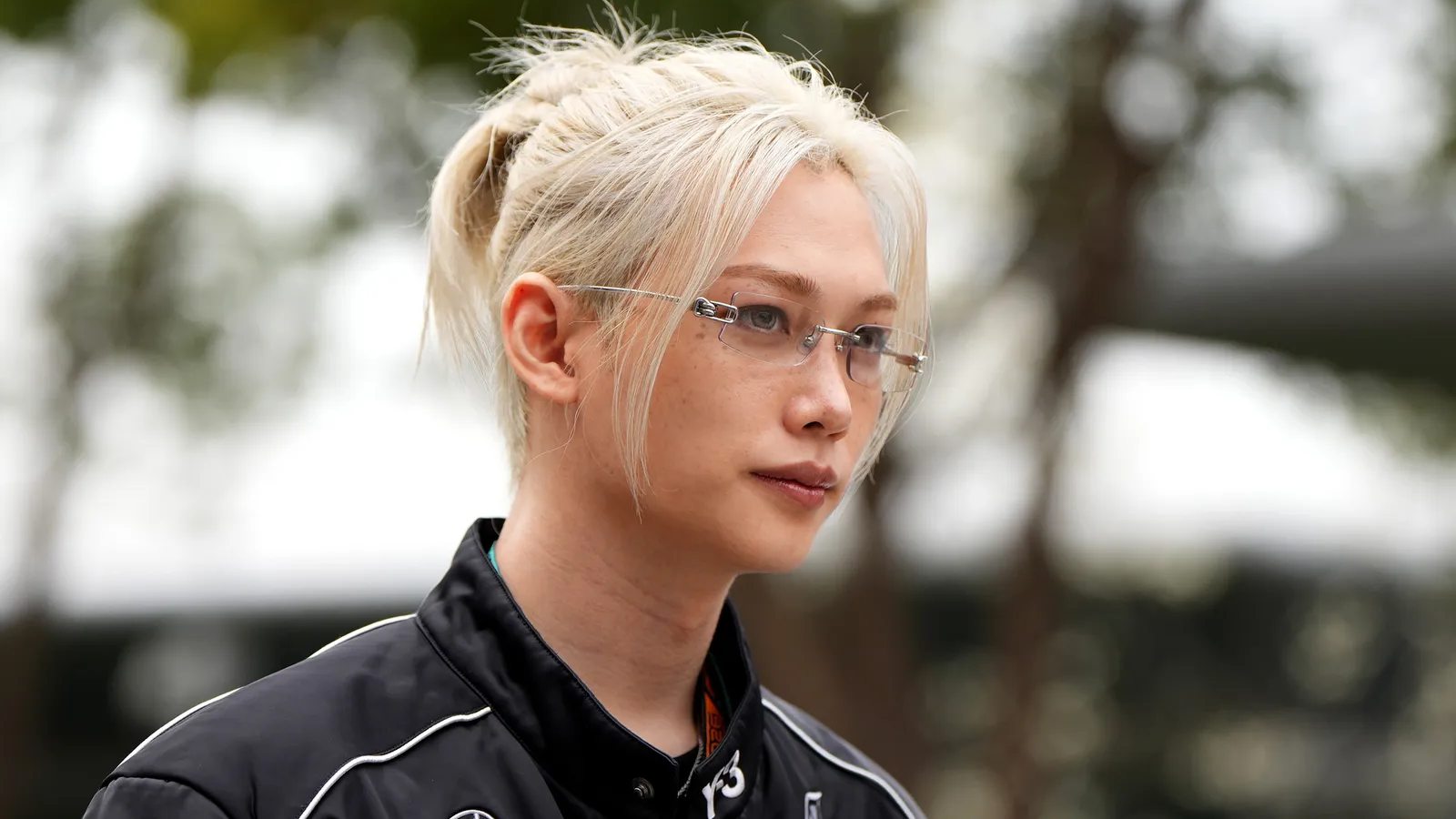 Stray Kids’ Felix captured the attention of fans and attendees at the F1 Grand Prix of China in Shanghai, appearing as a guest of Mercedes. Particularly, he stood up in a setting better known for racing than beauty, all thanks to his unique makeup choices. The Stray Kids member was spotted wearing an Adidas Y-3 jacket with leather pants. In addition, he styled his signature blond hair in a ponytail with a few loose pieces around his face. His makeup was giving a light and clean vibe, keeping his natural freckles visible and adding a stylish touch with rectangular glasses.